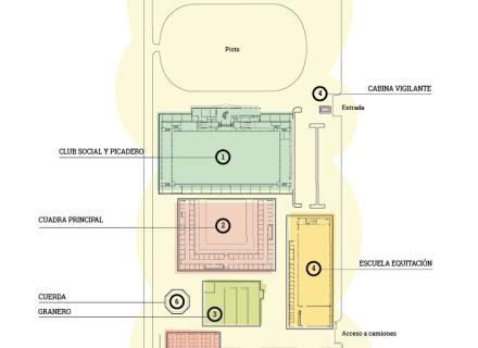 - Picadero Cubierto Escuela de Equitación: 22 x 60 m.